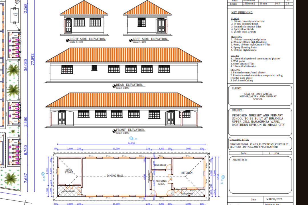 Completed March 2025 – We hired an architect and drew up several possible building plans to complete as funding allows and the school grows.